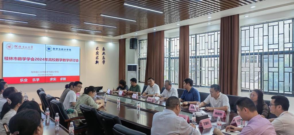 2024年4月29日上午,桂林市数学学会教学研讨会在我校召开。桂林市数学学会张军舰理事长、桂林各高校数学学院(系、部)领导及教师代表60余人参加了此次会议。williamhill体育入口注册蒋远营院长、唐国强副院长、封全喜副院长及10余名教师代表参会。
