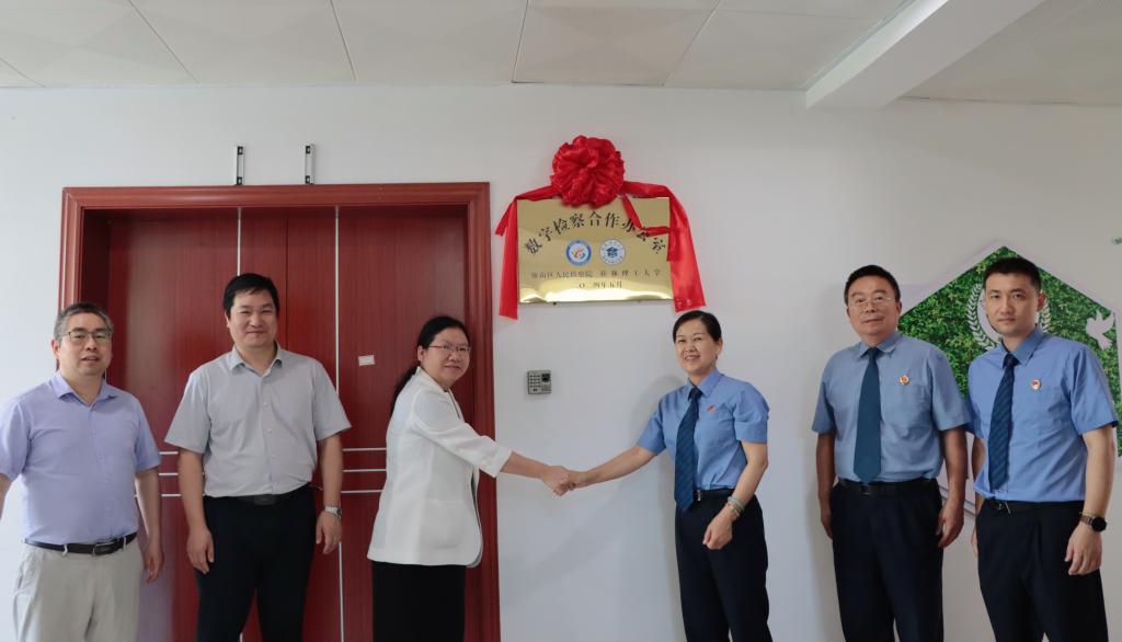 学院党委书记江玲与雁山区人民检察院党组书记、检察长黄干莲共同为数字检察“合作办公室”揭牌