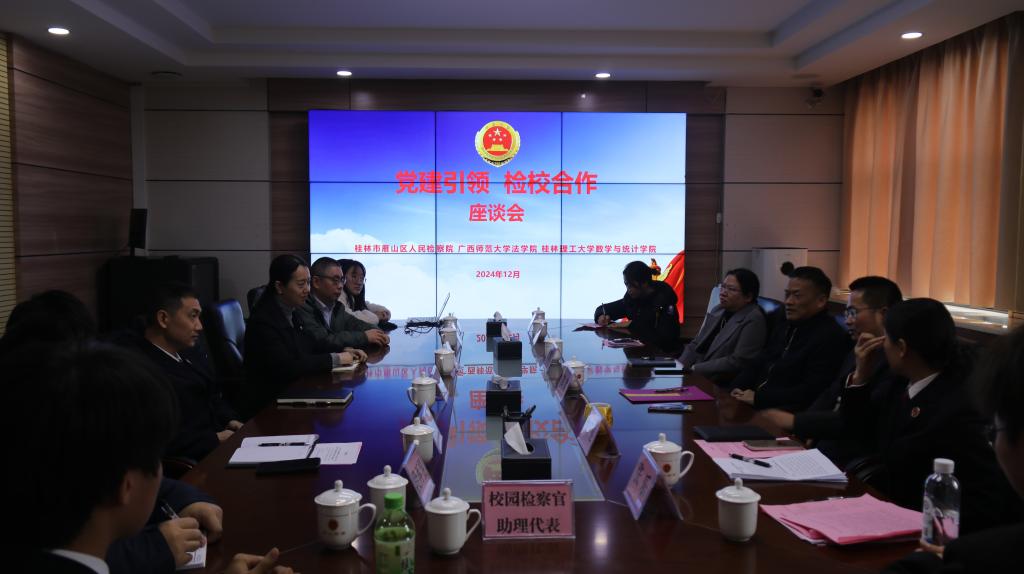 2024年,在桂林理工大学williamhill体育入口注册党委大力推动下,通过召开多次协调推进会议,成立校检合作工作专班,桂林理工大学williamhill体育入口注册和桂林市雁山区检察院就开展协同育人达成一致,并于2024年5月23日签订了《数字检察产学研检校合作协议》《实习实践协议书》,分别举行了数字产学研实习基地和数字检察合作办公室揭牌仪式、“校园检察官助理”聘书颁发仪式。桂林理工大学williamhill体育入口注册党委书记江玲,院长、党委副书记蒋远营,桂林市雁山区检察院检察长黄干莲出席了仪式。双方还在随后的座谈中详细交流了校检合作共同开展数字检察、课题调研、学术交流等具体事项。