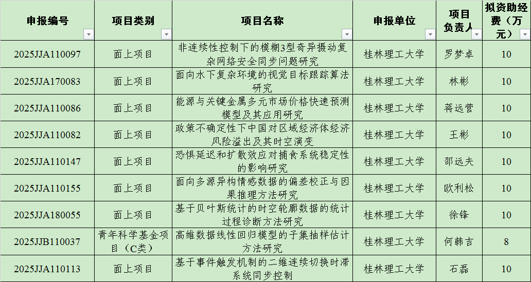 国家自然科学基金作为我国支持基础研究的主渠道,代表着科研项目的最高水平。学院此次获批的3个国家基金项目涵盖了应用数学、统计学等研究方向,体现了学院在多学科交叉融合方面的深厚积淀。在广西科学基金项目申报中,学院更是硕果累累,12个项目获得立项资助,取得新突破。这些项目紧密结合广西经济社会发展需求,在数理金融、人工智能、模式识别等前沿领域开展深入研究,为地方经济社会发展提供了强有力的科技支撑。