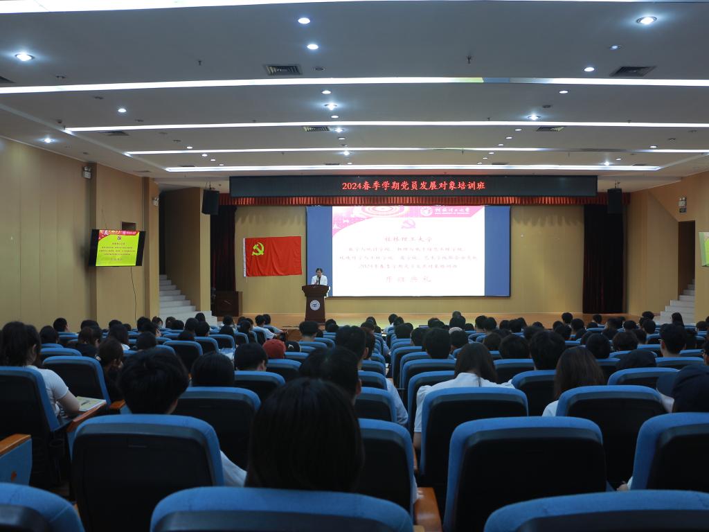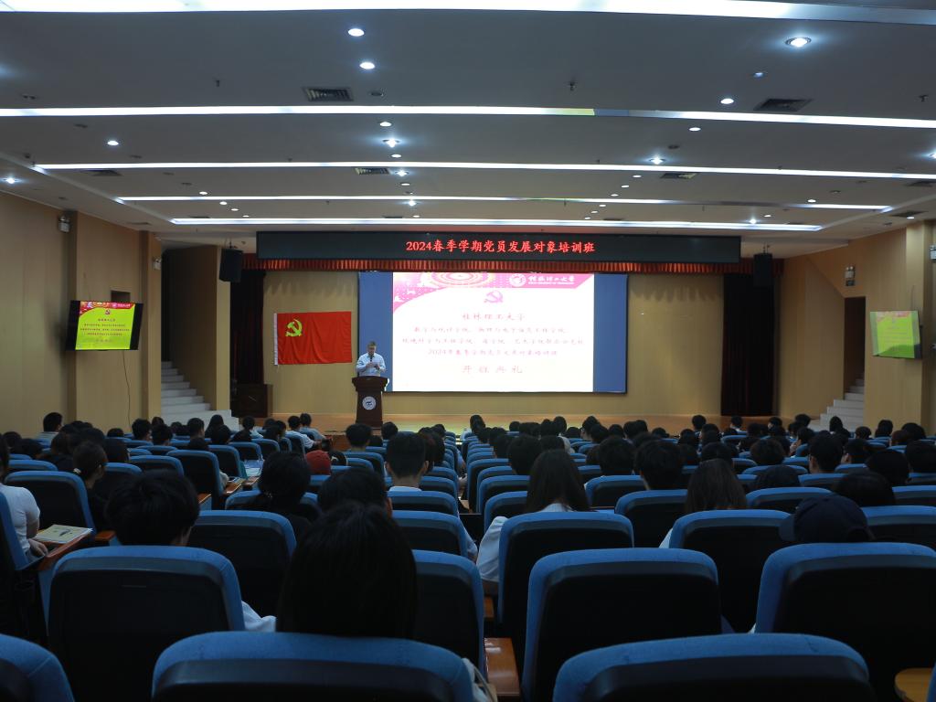 5月13日中午,williamhill体育入口注册、物理与电子信息工程学院、环境科学与工程学院、商学院、艺术学院联合分党校2024年春季学期党员发展对象培训班开班典礼于雁山校区图书馆报告厅举行。数学与统计学院党校校长、党委书记江玲,党校副校长、党委副书记钟立军出席开班典礼,各学院党校教务员,以及各分党校全体党员发展对象参加此次开班典礼,典礼由williamhill体育入口注册教务员夏晴主持。