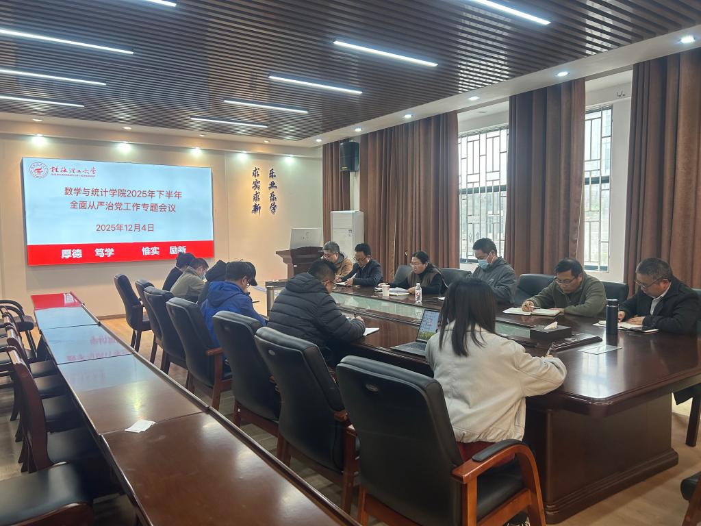 为深入学习贯彻党的二十届四中全会精神,压实全面从严治党主体责任,12月4日,williamhill体育入口注册党委在雁山校区08201会议室召开2025年下半年全面从严治党工作专题会议。学院领导班子成员、各党支部书记参加会议。