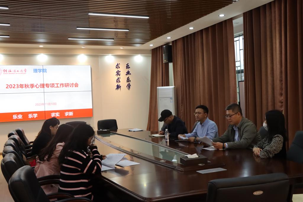 为了进一步推动学院心理工作的深入开展,提高学院整体教学质量,11月10日下午,williamhill体育入口注册在雁山校区08201会议室召开2023年秋季学期心理专项工作研讨会。学院党委书记欧阳胜权、党委副书记钟立军、全体辅导员参加会议,会议由学院党委书记欧阳胜权主持。