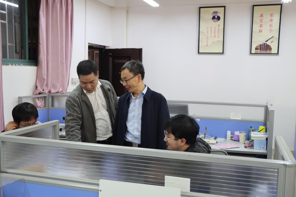 在视察过程中,张富文副院长一行认真查看了研究生工作间的安全设施和实验室的设备情况,详细询问了研究生的学习、生活和科研进展情况,并就当前存在的困难和问题进行了深入交流。
