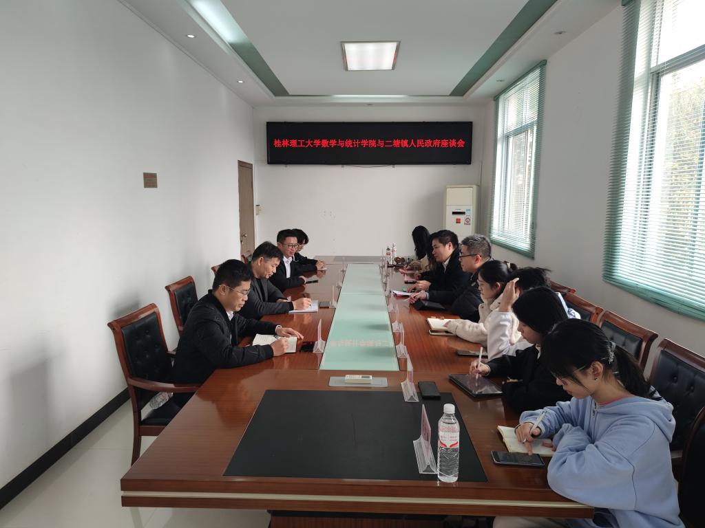 随后考察组前往二塘镇人民政府与当地领导开展座谈交流。会上,同为桂工校友的二塘镇党委书记蒋祖华对母校领导老师的到来表示热烈欢迎,充分肯定了桂工学子关注社会的情怀和勇于实践的精神,并详细介绍了二塘镇柿饼产业的发展、市场需求、产业难题等内容,他希望通过与母校的深入交流合作,探讨在技术创新、销售统计、柿饼质量提高、居民就业问题等方面的提升与改善,为持续推动柿饼产业高质量发展,全力打造中国柿子名镇添加动力。