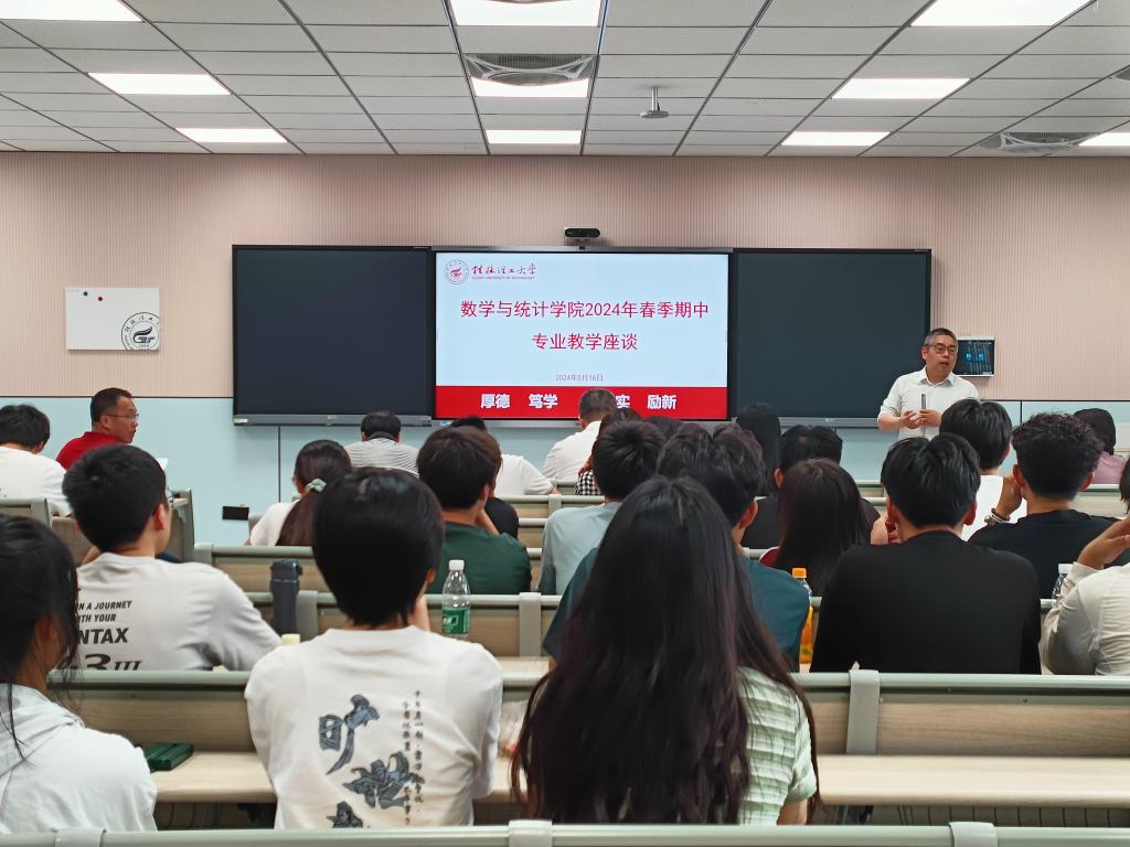 为更全面了解学生学习生活情况,广泛听取学生的意见与建议,切实提升学院办学水平,助力学生成长成才,学院于5月16日组织各年级学生开展了2024春季学期期中教学检查座谈会。会议由学院副院长封全喜主持,学院党委副书记钟立军、副院长唐国强、统计学教研室主任丁少玲、信息与计算科学教研室主任谢海、各年级辅导员及班级学生代表参加了本次座谈会。