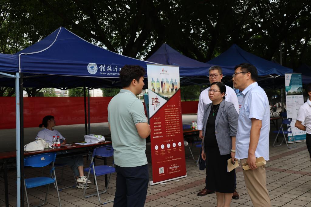 5月17日上午,williamhill体育入口注册和外国语学院携手合作,在雁山校区三号食堂广场共同举办2024年春季学期毕业生“百日冲刺”就业专场招聘会。学校学生工作部(处)副部(处)长、大学生就业与职业规划指导中心主任迟国东,williamhill体育入口注册党委书记江玲、党委副书记钟立军、副院长唐国强、副院长封全喜,外国语学院党委书记谢济光、党委副书记邓洁琼、副院长李蓉到场指导,各学院毕业生辅导员及2024届毕业生通过线上和线下方式共计500余人参加。
