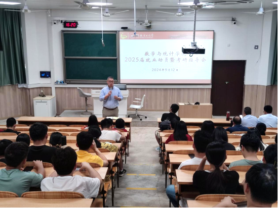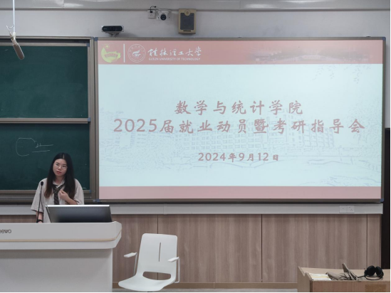 为扎实推进2025届毕业生就业工作,引导毕业生树立正确的就业观念,促进毕业生高质量充分就业,进一步加强学风建设,增强学生考研决心和信心。9月13日,williamhill体育入口注册在雁山校区07119教室举行了2025届就业动员暨考研指导会。学院党委副书记钟立军,副院长封全喜、王彬,教研室主任丁少玲以及往年考研成功学子代表靳欣、张静雨、李连娥、莫诗琪和2025届全体同学参加本次会议。会议由学院党委副书记钟立军主持。