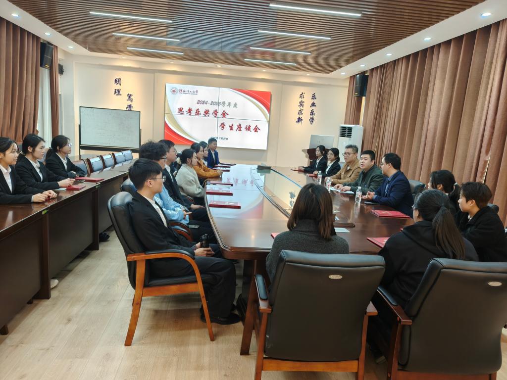 座谈会伊始,柯总监首先向荣获思考乐奖学金的同学们表达热烈祝贺,随后结合深圳思考乐教育集团的业务布局、核心优势及未来规划,简要介绍公司发展概况,让同学们对企业形成全面认知。他强调,奖学金既是对同学们过往学业的肯定,更是对未来发展的激励,希望大家以获奖为新起点,在学业与职业探索中持续奋进。随后,获奖同学们依次自我介绍,分享人生格言与发展设想,展现出优秀风貌。紧接着,围绕同学们的自我介绍与职业困惑展开交流,结合就业市场形势与行业趋势,解答专业对口岗位选择、职场能力培养等问题,叮嘱大家结合专业储备、兴趣与社会需求制定职业规划,鼓励同学们在大学期间提升综合素质,从专业能力、实践经验、职业素养等方面做好准备,为步入职场夯实基础。