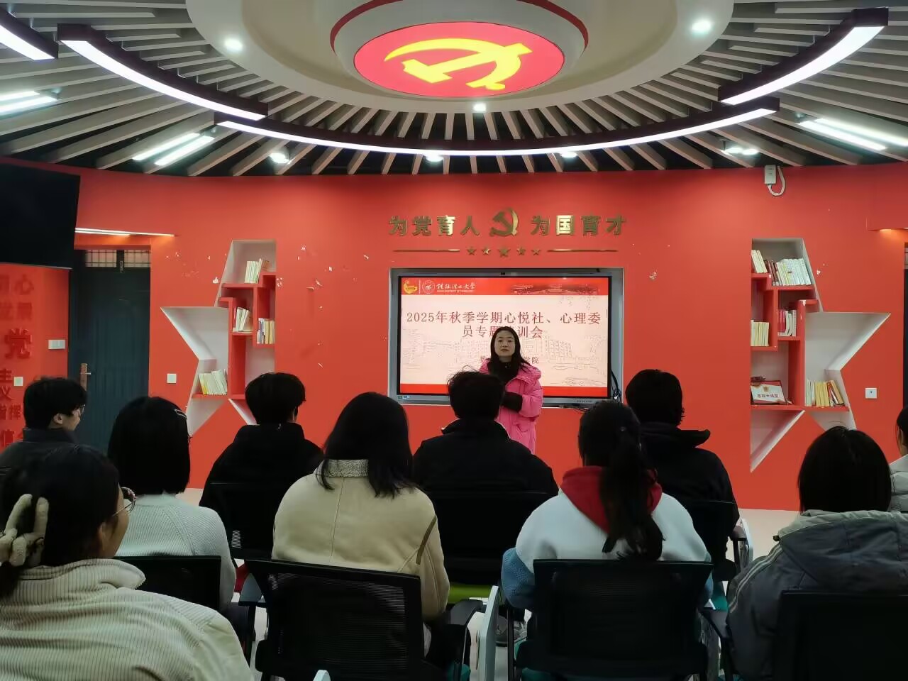 老师强调,学生心理工作骨干是日常心理安全教育的“宣传员”与“贴心人”,要主动深入同学中间,通过主题班会、宿舍座谈、个别交流等多种形式,普及心理健康知识,营造“关注心理、关爱自我”的良好氛围。同时,要建立日常心理动态排查机制,定期梳理班级、宿舍学生心理状况,对出现心理波动的同学及时给予关怀与引导,必要时上报学院寻求专业支持。培训还就如何策划开展班级心理主题活动、如何利用线上线下资源传播心理正能量等内容进行了详细指导。