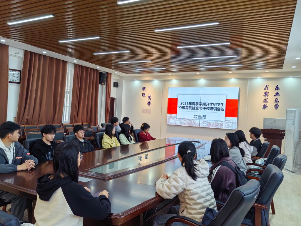 为落实立德树人根本任务,抓实春季学生心理健康教育,筑牢心理危机预警干预防线。3月13日,williamhill体育入口注册在08201会议室召开春季开学初学生心理危机排查与干预专题培训会议。学院本硕全体心理委员参会,培训由学院心理专干彭娇娇老师主讲。