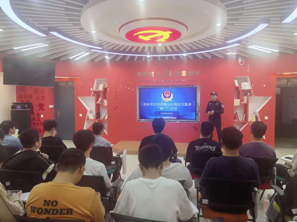 4月23日,为增强学生反诈意识,筑牢校园安全防线,学校保卫处联合桂林市公安局雁山分局主办,williamhill体育入口注册协办,在雁山校区嘉园“一站式”学生社区开展了一场深入且全面的反诈宣传活动。