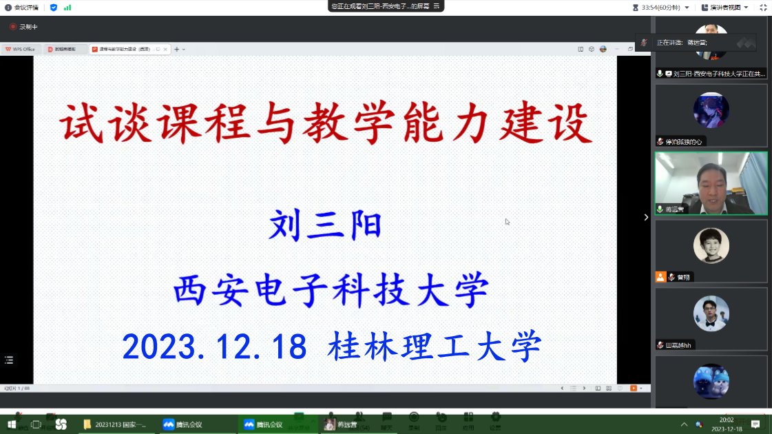 2023年12月18日,williamhill体育入口注册迎来了一场学术盛宴。本次活动的主讲嘉宾是国家级教学名师、西安电子科技大学williamhill体育入口注册院长刘三阳教授,他以“试谈大学课程与教学能力建设”为主题,为师生们带来了一场深入浅出的线上学术报告。