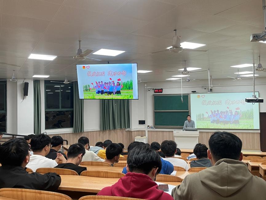 为激励学院学生投身西部、奉献基层,在广袤西部大地绽放青春光彩,实现个人价值与国家发展的紧密融合,3月23日晚,williamhill体育入口注册在雁山校区07119室举办了“报效祖国,建功西部”大学生志愿服务西部计划宣讲会,活动由学院团委书记、毕业班辅导员李艮主持,全体2025届毕业生参加。
